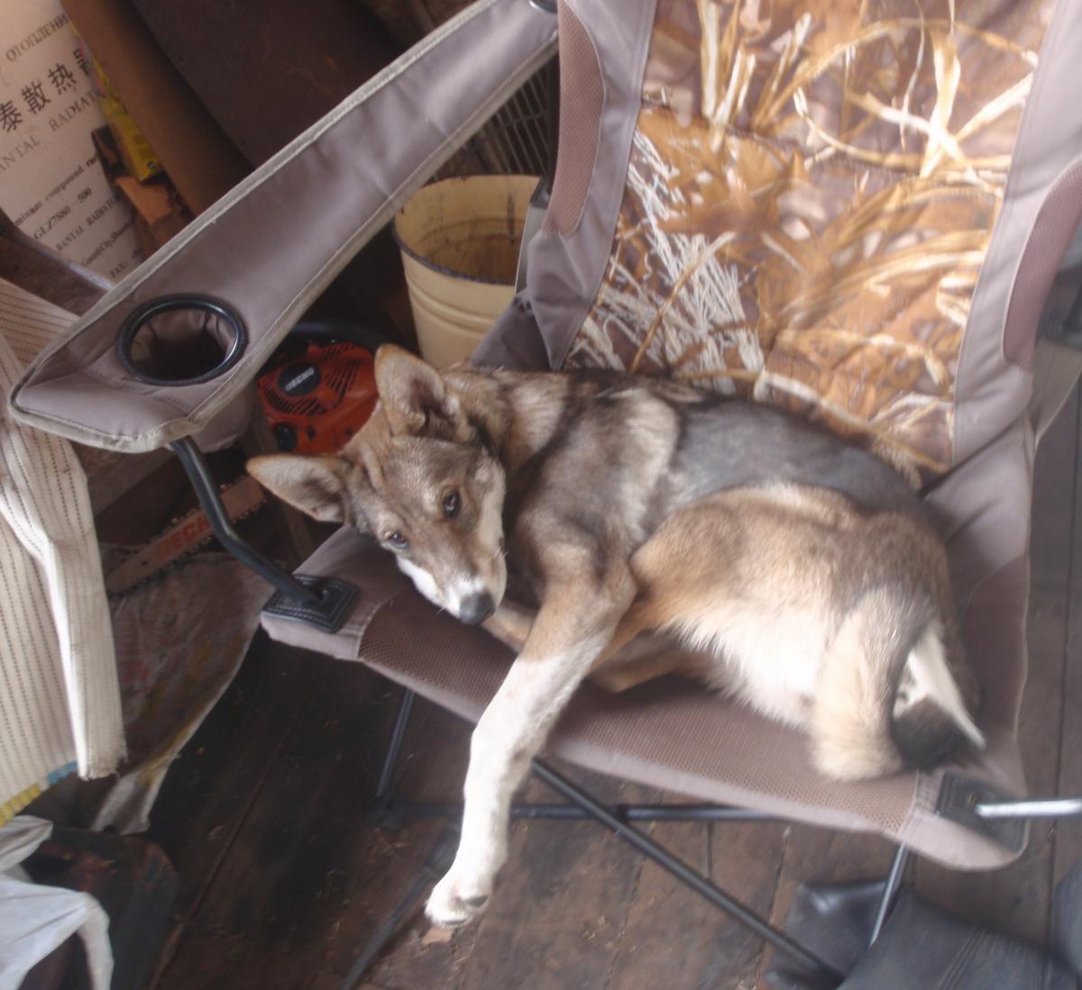 А МЫ лайки Восточносибирские, нам хоть и на веранде, но на полу спать западло, нам кресла подавай....под цвет шерсти...P4300174.jpgP4300175.jpg :ag: