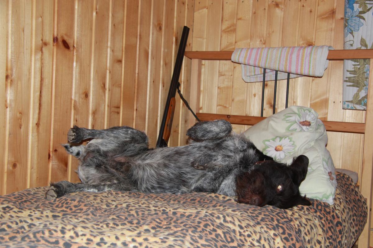 После охоты занес в дом рюкзак и через 5 минут такая картина с моей "пенсионеркой":