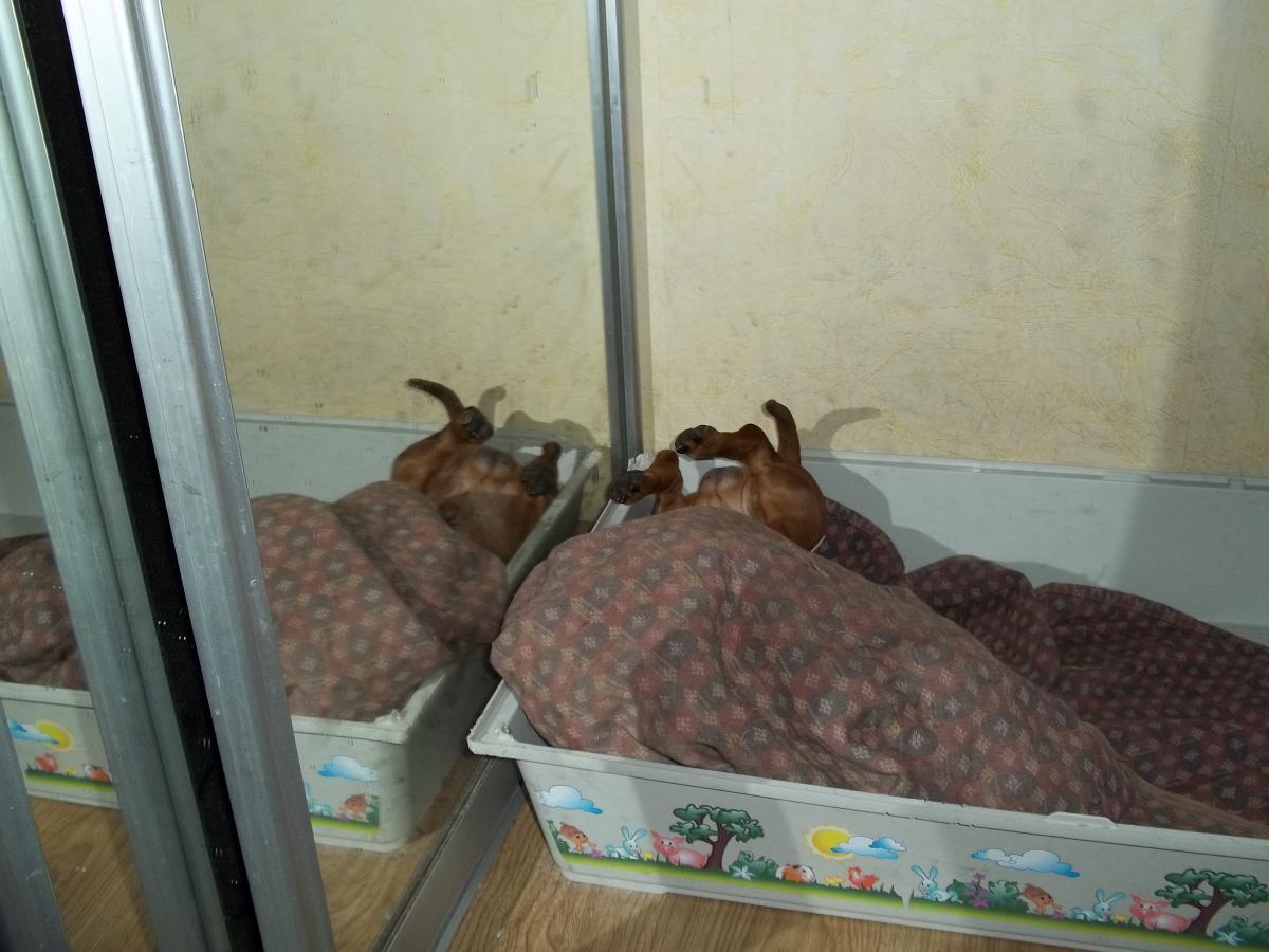 В жаркие дни спит предпочтительно на балконе (или рядом). Остальное время только на своем месте. Правда, иногда утром заставал его "не дома". Отмазка у него "железяка": "Сань! Прости! Такие сны снились (охотничьи).." и взгляд