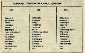 Хотя и дает она самое большое термоэлектрическое напряжение — около 112 мкВ/град., материалы слишком специфичны и редки.