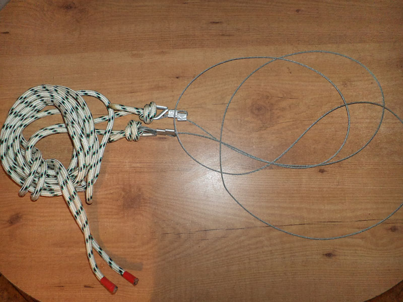 Тросики 3-3.5 мм можно применить и для подвески нодьи, на порядок проще будет чем по настоящему нодью установить.