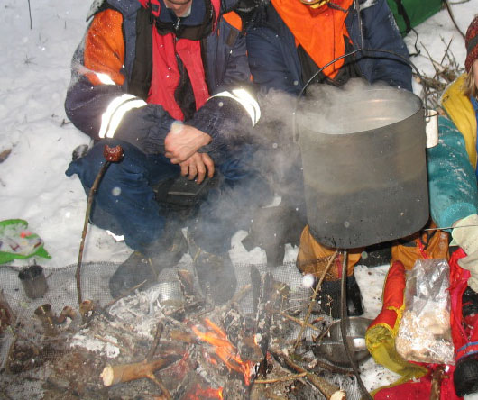Почитал, поржал маленько. Всякие тросики с собой таскать, чтобы костер подвешивать. Я лично не буду. Топор всегда с собой, на чаю попить, да пошамать по быстрому свартаганить шибко большого костра не нужно. Сушинку в руку толщиной срубить максимум 2 удара. На коротыши почикать тоже не долго. И на сварить супчик какой с тушняком, и на чай, и на погреться. Можно прямо и на снегу, шибко не провалится. А для ночевки однозначно закапываться в снег нужно до земли. Мише КЛОПУ нужно, пускай тросики да проволочки для костра таскает. Кому поглянется, пускай тоже носят. Как для меня так это лишнее. ДОБРОЙ ОХОТЫ!
