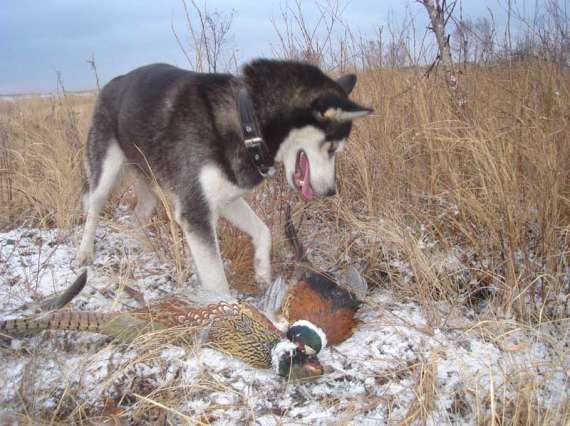 Теперь про собак. Я вожу и намереваюсь водить и далее только "черно-белых". Собаки на фото, отличные окрасом от означенного - собаки моего знакомого, к которому я тогда ездил на охоту. На момент нашего знакомства он имел трех ЗСЛ, собак без документов, кобели (серый - Пух и рыжий-Алтай) были неплохи в экстерьере, типичные "хантэйцы". С его слов они были приличными работниками, "не чета моим, городским". Следующей весной я привез ему и его товарищу двух щенков от своей суки и превосходного кобеля. Осенью привёз ещё щенка. Знакомый очень просил привезти ему восточников, так как ему надо было, чтобы собаки "сутками висели на звере". Я же, а позже и мои знакомые лаечники убеждали его, что ему столь вязких собак не надо, что он не сможет охотиться с такими собаками. Он своё мнение не изменил, но пока решил удовольствоваться теми РЕЛ, которых ему привезли. К той осени щенок РЕЛ, Арбат, привезённый ему весной, вырос и возмужал. В своре моего знакомого доминантом был рыжий-Алтай кобель, который, так же, был не обделён некоторыми рабочими качествами (на "троечку" по пятибальной шкале). Другой, серый кобель-Пух, был хоть и крупнее рыжего, но оспаривать лидерство не пытался. Он был самым натуральным баластом в охотах, как и его сестра однопомётница. Подросший же кобелёк Арбат был ростом уже больше рыжего, но меньше серого, ладил с рыжим и имел некоторую напряжённость в отношениях с серым. К той осени уже стало очевидным, что собаки моего знакомого сильно уступают в охотах приезжим городским. Подросший Арбат уже начал работать глухарей, в ту осень он выступил главной ударной силой при добыче медведика, превзойдя в работе Алтая, хотя на то время ему исполнилось всего лишь 6 месяцев. Но буквально через несколько дней рыжий гибнет под колёсами лесовоза. Хозяин очень болезненно воспринял гибель собаки. После этого начинается "передел власти" в своре, где серый-Пух взялся верховодить. Настроение после гибели кобеля у всех было никудышным и мы вернулись в посёлок. В посёлке, дома, происходит стычка между Арбатом и Пухом в которую уже влезает и мой кобель-Кремень, тоже шестимесячный. Пуха трепанули, я их разогнал, но Пух не сдался. Мой кобель решил, что он может добавить Пуху, вновь зацепился с серым и тот взялся полоскать выскочку. Но тут уже это не понравилось Арбату и он поставил жирную точку в переделе влияния, вынудив Пуха капитулировать. В ту же зиму знакомый избавился от суки, однопомётницы Пуха, а самого Пуха вернул тому, у кого он его приобретал. С той поры старшим стал Арбат. Кроме этого знакомому было привезено ещё несколько щенков. В общей сложности было привезено семь щенков: четыре РЕЛ и три ЗСЛ. Все щенки от собак с репутацией: рел - от известных ярославских собак, зсл - от собак Довгаля и собак Языковского. Часть щенков он раздал знакомым, себе оставил трёх РЕЛ и кобелька от собак Языковского (Карат). На фото "коллектив" его оглаживает мой товарищ. Три года назад, знакомый осенью был на избе наших общих знакомых с Каратом и сукой РЕЛ. Собаки от избы взялись за лосем, или оленем и уперли ходом за зверем. На избу они не вернулись ни в этот, ни на следующий день. Знакомый вернулся в посёлок и в последующем ещё дважды ездил на избу, проверяя, не вернулись ли собаки? В это же время я договорился с хозяином этой избы, чтобы он приветил там моих знакомых из Калуги, которые хоте