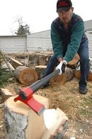 Не могу себе это представить)). По окончанию работ втыкаешь топор в пенек просто носиком, рукоятью смотрящей в небо под углом 45 градусов примерно. Как таким образом колоть чурбак мне трудно представить..колоть надо с таким же углом, как-будто топор просто в пенек втыкаешь по окончании работ.