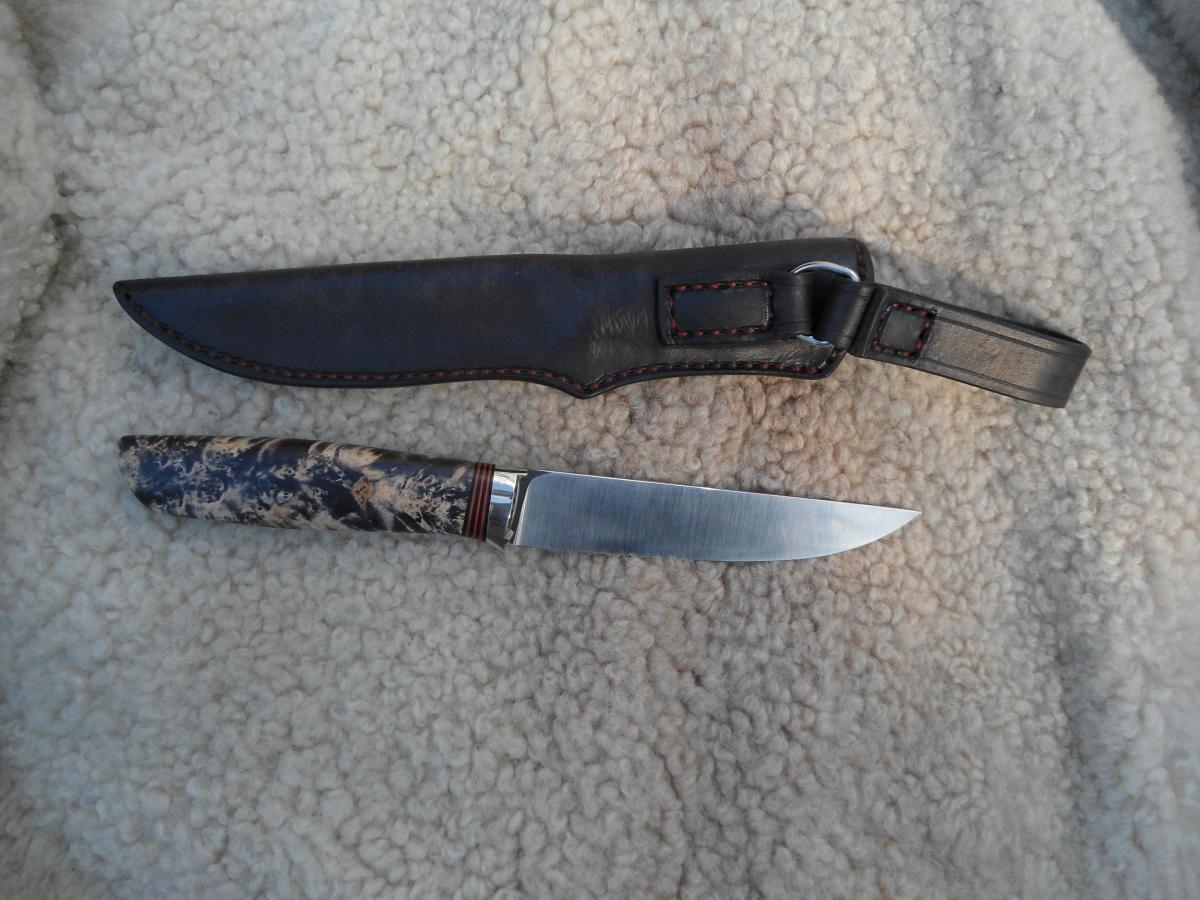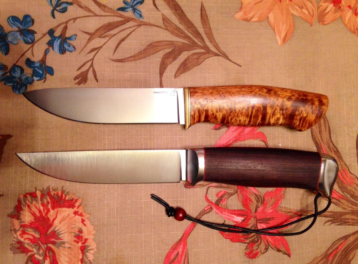 В общем пока нравится. Думаю очень удобен будет по зиме, ибо рукоятка то под якута крупная. Сталь ХВ5(алмазная) - посмотрим с чем ее едят.. Сравним с теми что имеем. (D2 от Benchmade, VG10 от Gold Steel в виде Recon Tanto Sam Mai III, ШХ15 от Анатольича, Кронидура 30 от Слонов, Х12МФ от Романа Гусева, нержи от итальящек Fox и таки реально финок Lauri и Jukka Hankala|). Фот автора ножа, самому делать лень :)
