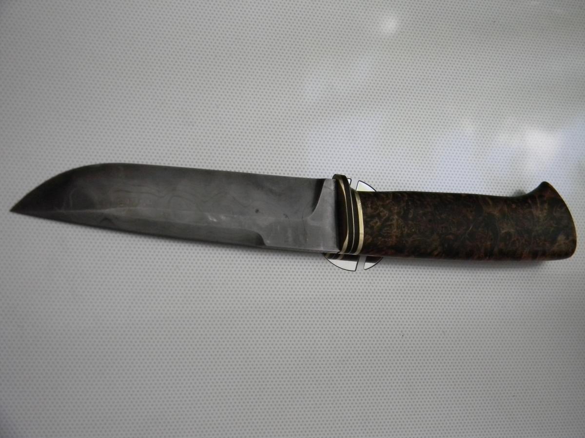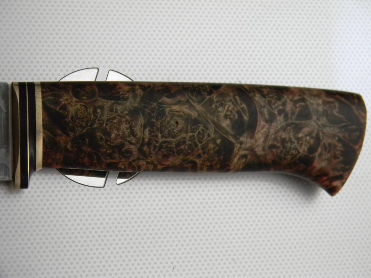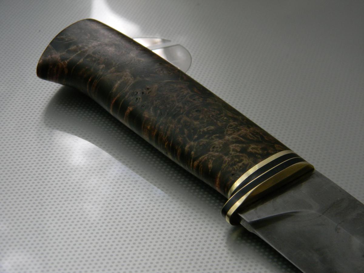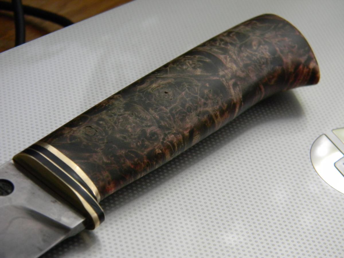 Порылся, вроде алексеев тут не много, вы ко мне? логически напрашивается каментарий про ваш крайний нож. потратить столько денег на клин приказчикова, я бы сбил рукоять, можно сбить аккуратно не повредив больстер, и сделать иначе, сделать более выраженым брюхо рукояти, потому как клин большой, рукоять узкая, смотрится как недокухонник.