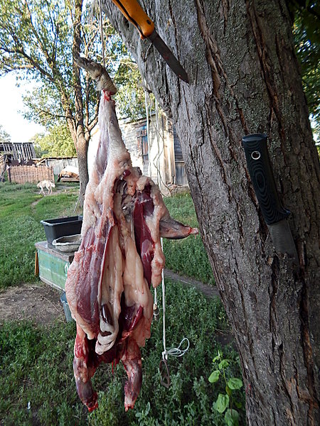На открытие ездил на сурка на Родину. Охота как обычно-стрелять-так все а обдирать и четвертовать-так некому-типа все устали :) В очередной раз порадовал ножичек сталь С 35 вн. 15 ошкурено, 22 разобрано. Сурок здорово садит нож-ибо жирный, в шерсти песок-но ничего все нормально.Потом еще барана разобрал и ошкурил.