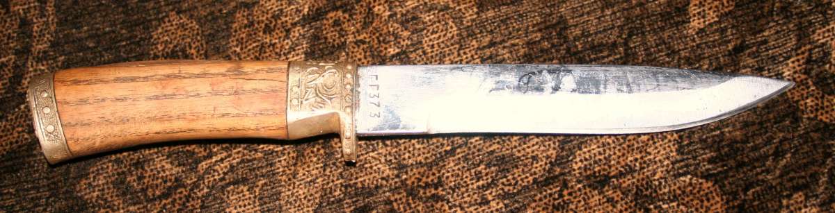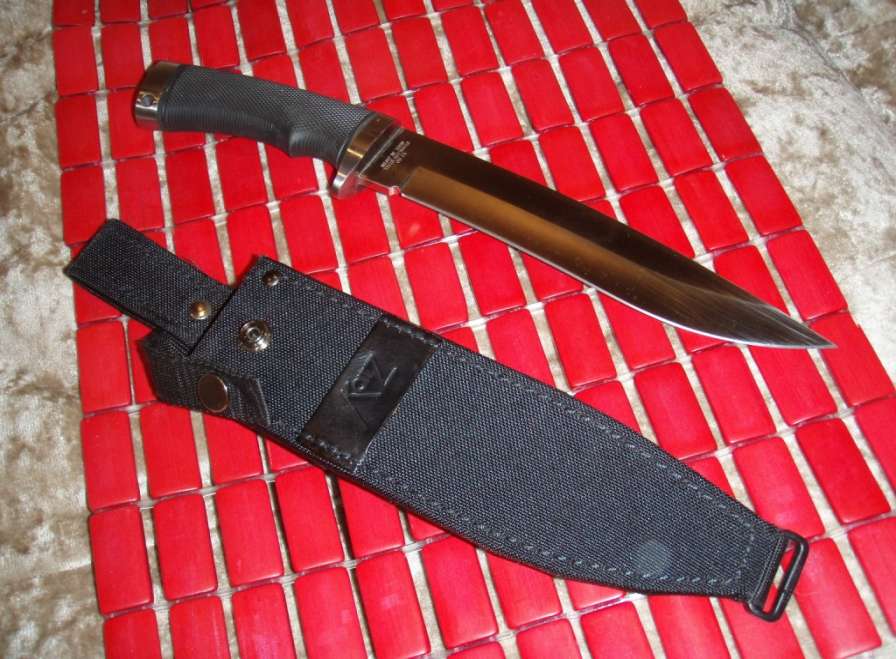 Присоединяюсь к ayno (Виктору). У меня тоже есть очень похожий на это изделие нож. Прекрасно рубит кости. Косулю разрубает по ребрам вдоль хребта с одного удара. Неоднократно разрезал им лосиный крестец при разделке. Нож очень твердый. Но не выкрашивается как в тесте у Астахова в ОиР на глухариной косточке. Именно им рублю косулячьи трубчатые кости дома при разделке мяса. Фигово точится. Крупный брусок скользит по лезвию. но зато и не тупится. Мишка, марал в одном походе без правки. Хорош для лагеря. Недостаток- латунные вставки. Очень тяжелый. Таскать в пешем не лучший выбор. Не покупал. Получил в качестве приза в соревнованиях по пулевой стрельбе. Беру с собой, если конный или авто тур.