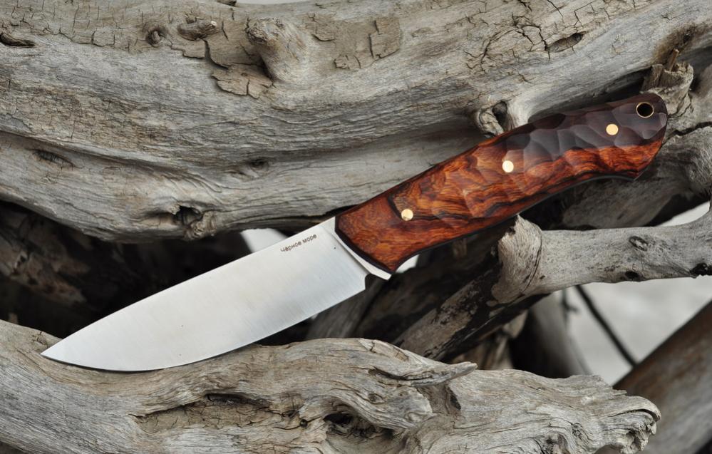 Нож 100% китайский, уж не знаю чего так стесняются наши кизлярские ребята писать об этом честно хотя бы мелким шрифтом на упаковке, как это делают амеры и еврогейцы, ведь на дворе 2016 год, а не 90-е и даже не нулевые и Китай нынче уже не подвальный, а промышленно-индустриальный, что и видно по весьма достойному качеству сего девайса. То есть изделие прямо из коробки можно вешать на пояс и идти в лес, ничего подтачивать, зашкуривать, лакировать и т.д. не нужно, даже заточка вполне себе режет бумагу и теоретически можно даже побриться. Есть замечание к ножнам, в идеале сделать бы их на 1мм потолще, так как есть отзывы о поломках. Фиксируется нож в них отлично, заклиниванием, как нормальный охотничий. Купил за 4000р, можно было найти рублей на 500 подешевле в интернет-магазинах, но хотелось в руках покрутить сначала. Режик понравился, форма рукояти конечно не идеал для рубки, но как выше указал, ее всегда можно заменить, если будет уж совсем неудобна. Дырка под темляк сзади в шоковом зубе есть, так что сверлить не придется. В сертификате обозван разделочным, но по факту реальный боевой нож и разделывать им можно только двуногих, при чем любым концом, в 19 веке такой бы раскупили медвежатники, из него рогатину смастырить за полчаса влегкую)))). Фото и ТТХ: