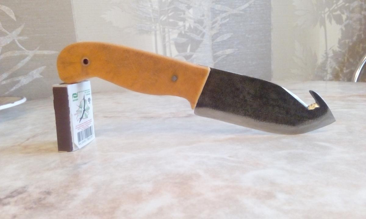 Есть некоторое неудобство в загнутости нижнего конца гарды, но оно не принципиально. Не будешь же переделывать унаследованный нож. Хотя, может быть и внесу небольшие правки.
