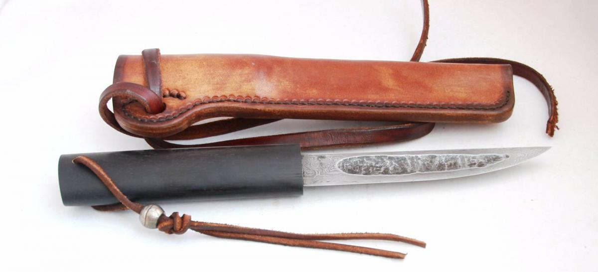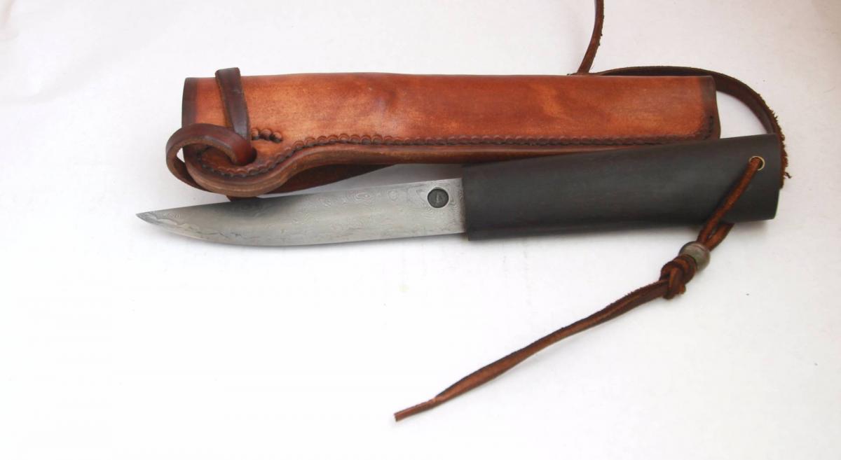 рукоять 125мм чёрный граб покрыт данишем. Ножны кожа РД краска финиш