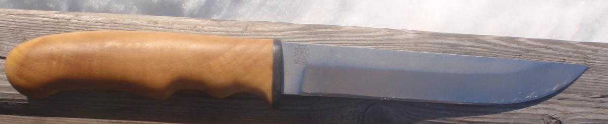 Ножик правда получился очень крепким. Засаживаю в половину лезвия в мёрзлое мясо(кусками смёрзшееся) - отламываю в куски в бок - практически всем телом давлю - отламывая куски, нож выдерживает. хотя у меня три ножа так у ручки обламывались.