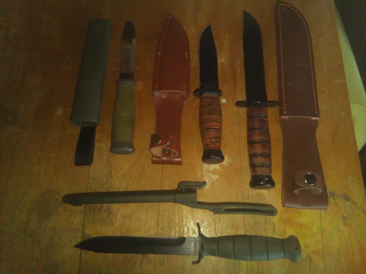 военные ножи-все хороши , хищные , стремительные , непрактичные , правда-но душу радуют , ка-бары ни один , ни второй в лес не беру-куплены для услаждения взора . а кривой толстячок с потрескавшейся костяной ручкой-оказался славным шкуродером , из напильника сделал . мечи-тоже сам делал . просто так ...Глок прекрасен.