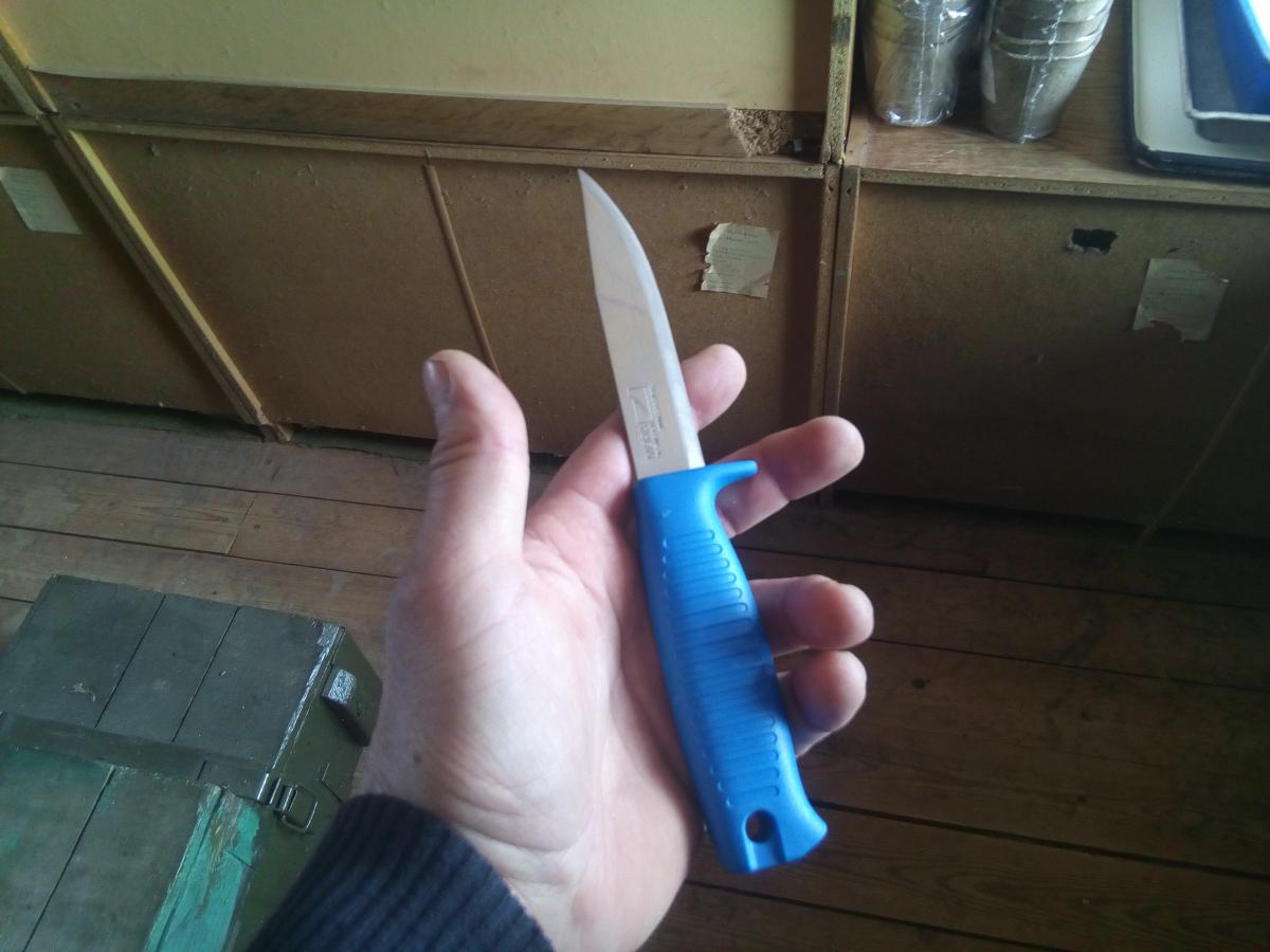 Это финн, не из дешёвых, идет вместе с вилкой.Крайний справа в рундук в лодку