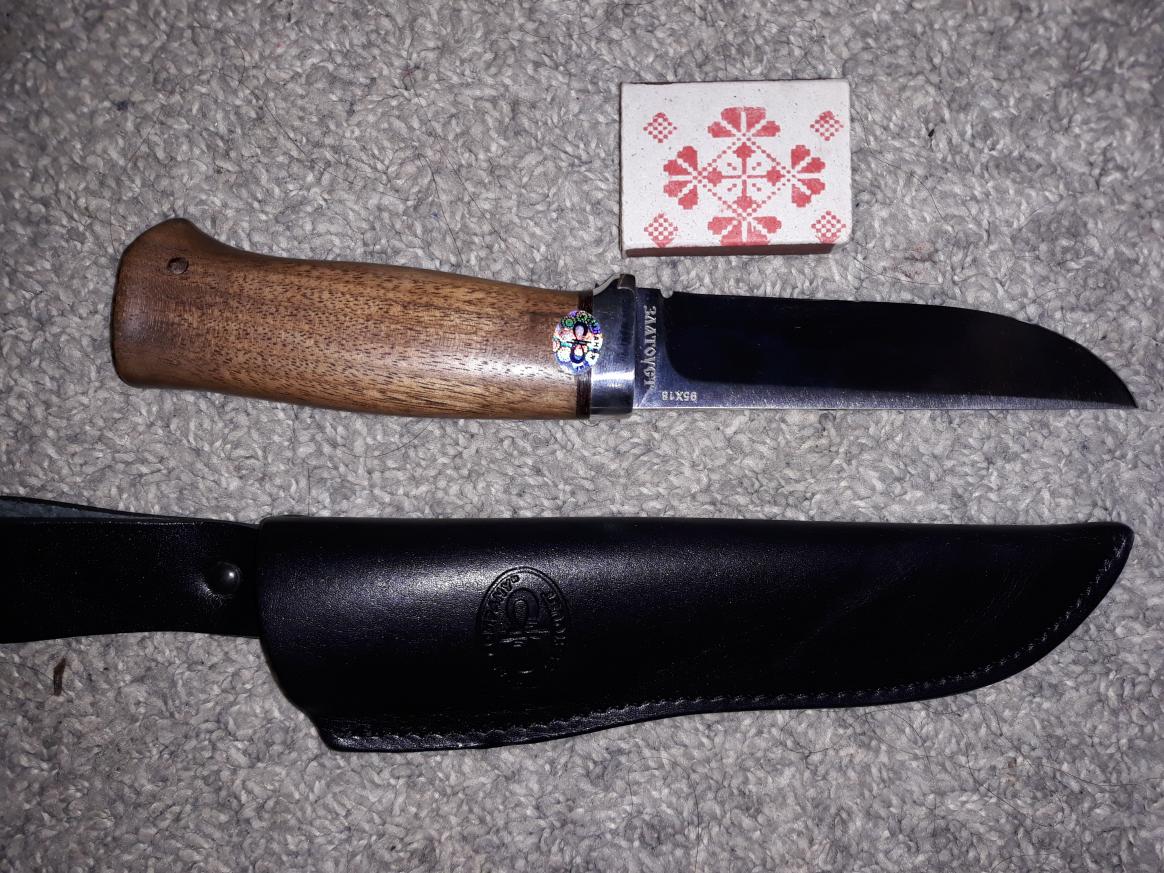 !!! Влюбился с первого взгляда!!!Не отводя глаз попросил показать нож,когда он лег мне в руку сложилось такое ощущение,что это продолжение руки...просто врос в ладонь....приобрел это творение!!! Теперь о ноже...Нож "Следопыт" от Златоуста,сталь 95×18,рукоять орех. Друзья подскажите,может кто владеет подобным ножом или владел,как служит и долго ли держится заточка?Не владел этим, но по всему моему опыту, когда Златоуст пишет твердость клинка 57-58HRC, то РЕАЛЬНО твердость 55-56HRC. И 95×18 сталь мыльная с их термичкой. В общем, как пару раз обжегшийся на их изделиях, не рекомендую. Ну или хоть сталь другую выбери. Может хоть так повезет не нарваться на хлам.Друзья подскажите,может кто владеет подобным ножом или владел,как служит и долго ли держится заточка?