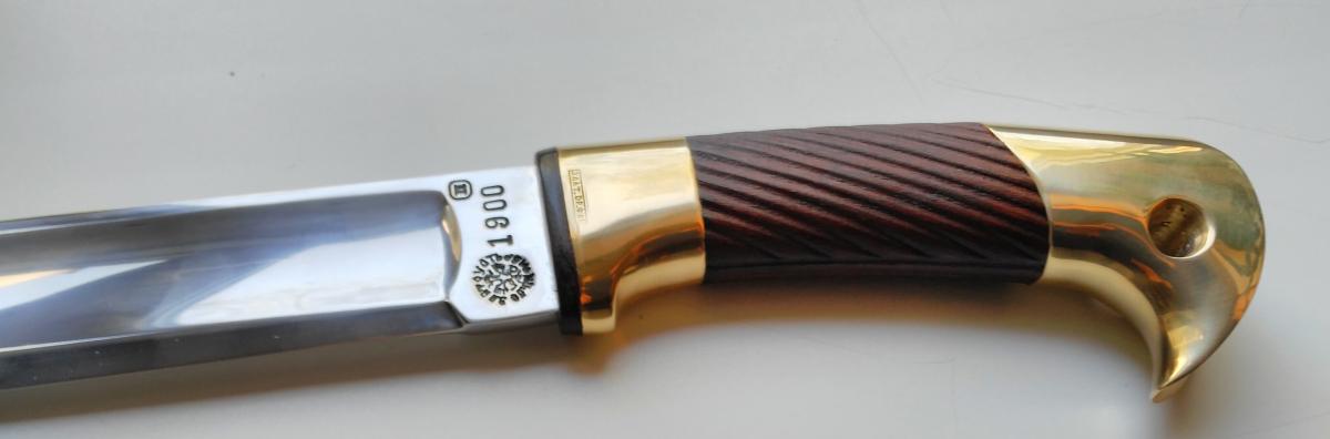 Мне на копанине по ВОВ почему то немного другой формы клинки попадались... У тебя больше на немецкую парадную саблю похож, если на рукоять не смотреть. И на рукояти тыльник как то агрессивно загнут... Не похожа на уставную.
