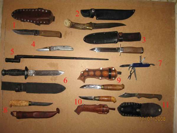 10. Финка сувенирная. Привезена моим прадедом депутатом горсовета из Филяндии до войны. В лихие 37-39 была варварским образом затуплена на точильном станке до состояния столового ножа с округлыи концом. Прадед боялся, что могут пришить хранение оружия, избавился от огнестрела и вот так обошёлся с финкой. Это ему не помогло, отправился в Сибирь. Переточил её мой отец, когда пошёл работать после училища.