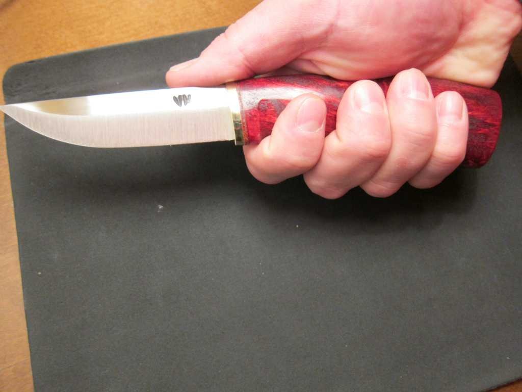 У всех Хелле есть один минус - низкие спуски. Приглядитесь к клинку - спуск к режущей кромке, максимум за 5 мм начинается. Парное мясо режет неплохо, но например картошку или морковь и т.д. - колет. Сталь, в основном, ламинат, т.е. средний слой высокоуглеродистая(с отличными режущими свойствами), а обкладки, мягкая нержавейка(которая царапается от резки... всегоДрузья, а кто-нибудь пользовался таким Helle Veidemann?