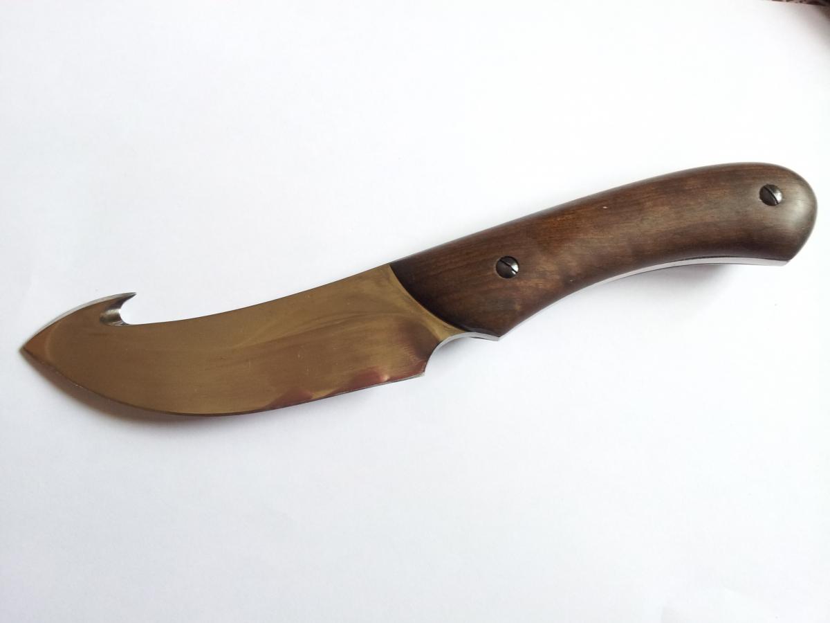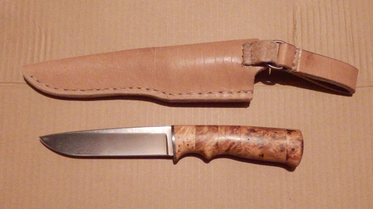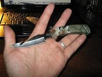 маленько напортачил правда когда засверливал одно отверстие вбок(точнее вверх)ушло.вроде замазал но видно до куда всад просверлен.толщина лезвия 3мм(всада 4мм)рукоять КАП БЕРЕЗОВЫЙ.пропитан маслом льняным.держится на эпоксидке.спуски вогнутая линза(если не ошибся) почти от обуха.спасибо!
