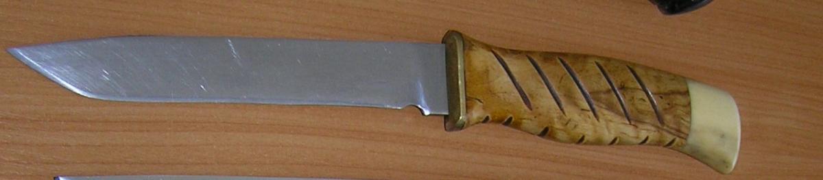 3. Самоделка, делался из какой то рессоры, хороший нож, использовал как разделочный для рыбы ни разу ни точил, один минус ржавеет и толстоват для филейного.