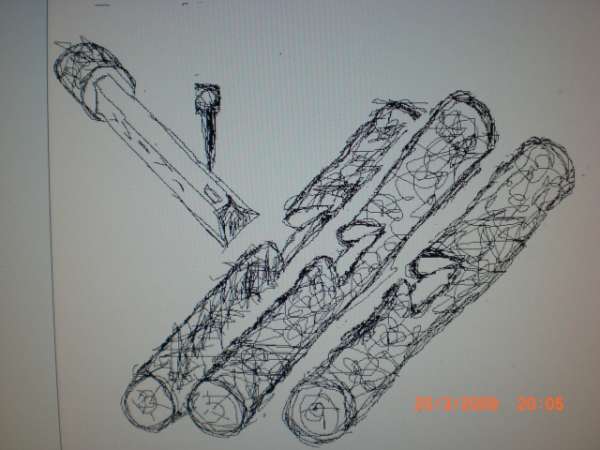 В бревнышках (желательно сухие ели)выбираещь углубления ,в виде усечённого треугольника основанием вниз. Изготовляещь из берёзки иглу.Так же в виде треугольника в сечение .На одном конце оставляещь цельную болванку,на другом отверстие под клинышек .Чтоб бревёшки не разбежались. Просовываещь иглу по углублениям до упора . На другом конце вставляещь клин.И остаётся шест из сухой ёлочки ,он полегче будет.
