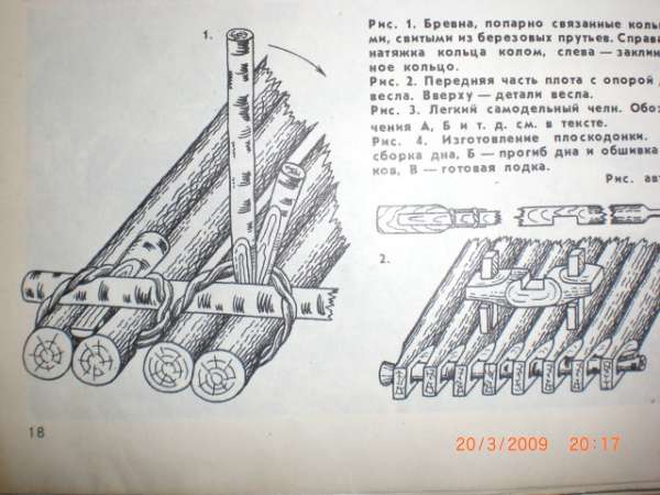 Начну с того что для одного человека с сидором и собакой .Достаточно три бревёшка ,по три метра и диаметром 30 см.Для сплава по каменистой ,неглубокой . Садят на одну "иглу" бревёшки.Это нужно для облегчения прохода .Под какое бревёшко попадёт то и "играет", пропуская под собой камень. А для спокойных глубоких на две "иглы".