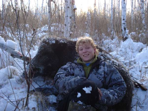 2)кабана заранил с вышки, он ушел, а на утро добрали с моим кобелем ему было 10 месяцев.
