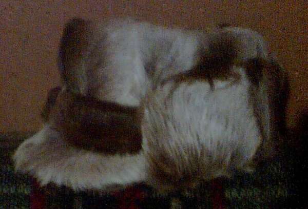 В те времена, когда кандидатский стаж был настоящим кандидатским стажем, я начинал свою охотничью "карьеру" "вечным" загонщиком, т.е. без ружья. Загонные охоты на копытных (и "мясные", и спортивные) были очень добычливыми и со временем в семье скопилось около десятка кусков камуса с лосиных ног. Все они были выделаны и из них сшили шапку - финку. Все бы ничего - и ноская, и не намокает, и как нынче говорят "стильная" - да вот только тяжелая немеряно. Отец поносил ее меньше сезона и положил в шкаф..........обнаружил я ее месяц назад, думал, куда поместить фото, решил в "отчеты..", ели не совсем туда, куда надо, пусть модераторы поправят.