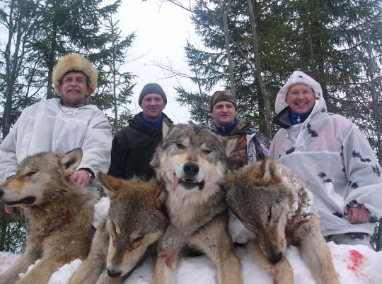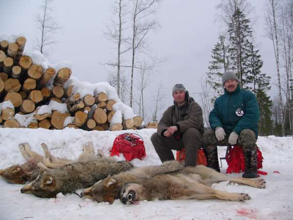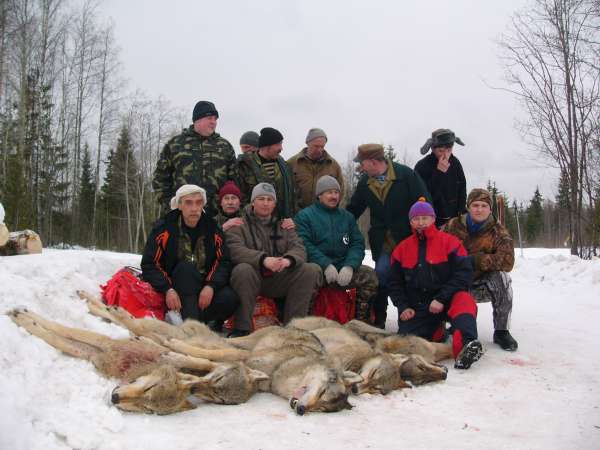 Суровые путрозаводские мужики! Считай всю стаю взяли. Волчица теперь долго будет приходить в себя, да собак по деревням таскать...