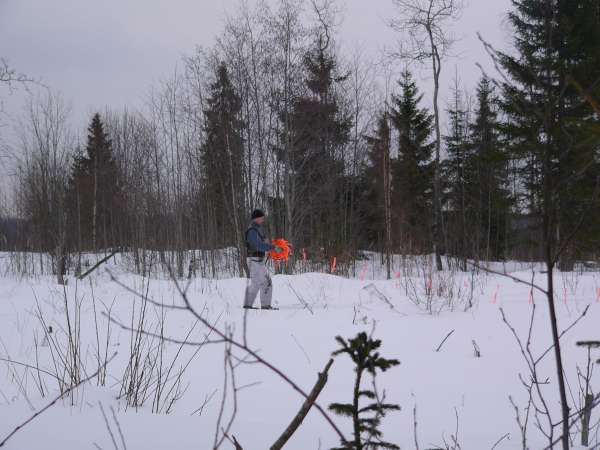 Флажили долго и очень аккуратно, благо время позволяло. Оклад вышел длиной около 5 км. Да, забыл сказать, по следам насчитали четырёх зверей. Решили охоту проводить в воскресенье.