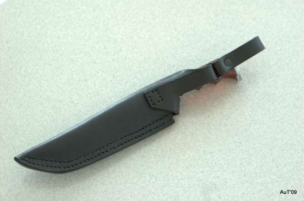 Посему: нож защищен от воздействий неблагоприятных факторов, владелец защищен от несанкционированного контакта с ножом, ножны обеспечивают беспроблемное извечение\убирание ножа одной рукой "вслепую". ИМХО все правильно, хотя и не аутентично. :)