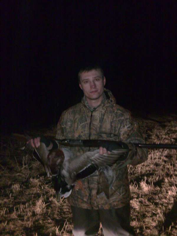 Не прошло и часа, как на меня вылетел крупный селезяка, пока я крякал в манок и ждал что он завернет на чучела, он наоборот отвернул, дистанция была 40-45 метров, в стволах пятерки, стрелять не стал, т.к. не был уверен что пятерами 34гр. попаду на предельной дистанции.
