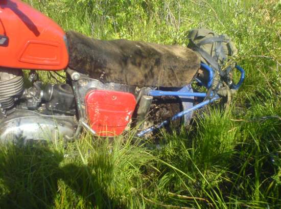 По опыту езды на мотоцикле по лесам и полям, скажу так..надо брать то что легче выталкивать, толкать и тащить:)) я серьёзно:). Так что лучше что полегче..МИНСК (если есть такие ещё), скутер или ИЖик какой либо без коляски, если вдвоём, то коляску можно прицепить, не сложно.