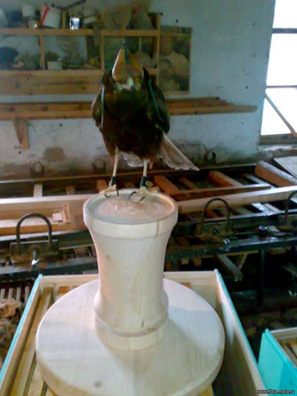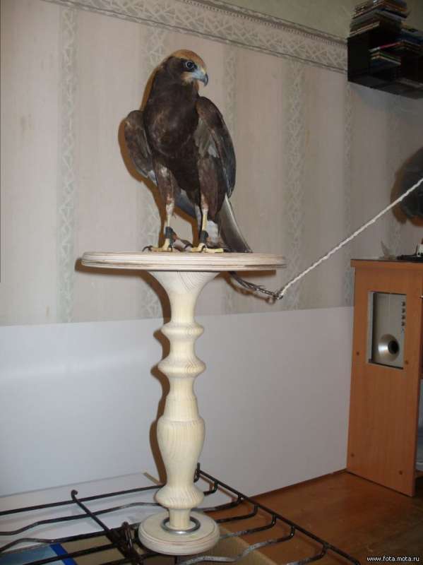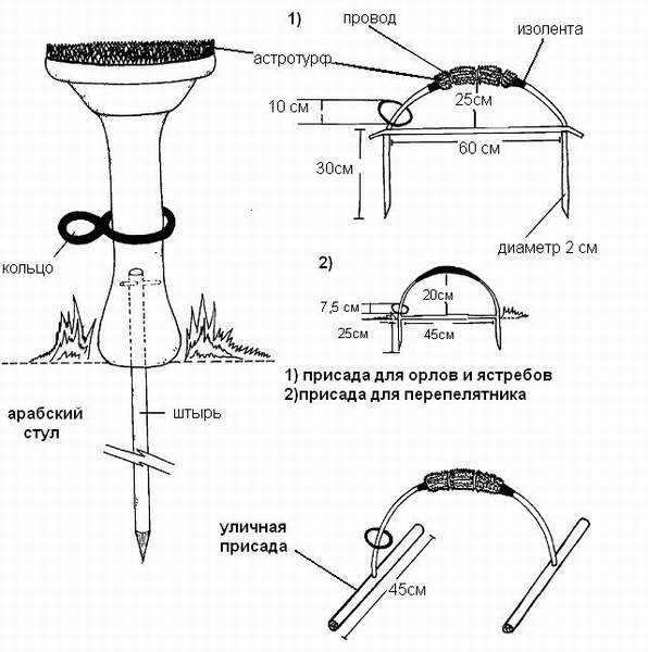 Изготавливаю соколиные стулья на заказ английского и арабского типа. Материал - береза, сосна, ель. Присады клееные, т.е. трескаться не будут. Готовая присада покрашена и с астротурфом ессно, ну и с кольцом конечно. Размеры в принципе любые, на ваше усмотрение. Есть возможность изготавливать как уличные, так и домашние(тяжесть основания устанавливаете вы). Цена готовой присады - в районе 100 долларов, с учетом сложности и размеров.