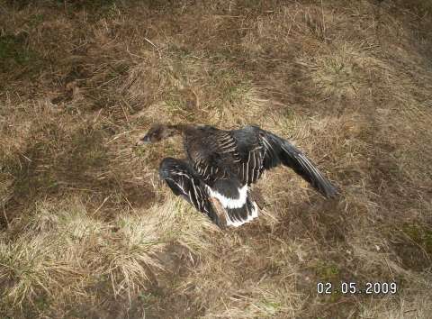 Утро последнего четвертого дня - отгулы кончились, впереди длинная дорога домой, завтра на работу. Но скопив все силы в кулак вытягиваю себя из теплого спальника в 4-30 и в поле. Хорошо, ночь была уже теплая, не такая как в первый раз... Гуся летало совсем немного, но наконец то заработали профиля и манки. Пару а затем четверку наманили практически с горизонта. Из каждого налета взяли по одному. И заключительного красавца уже почти в 9 утра из налетевшего сбоку косяка.