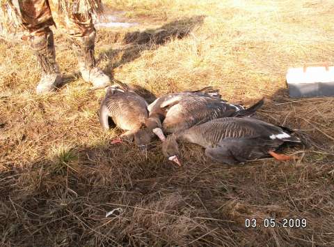 Результат второго утра - 4 штуки, все по- разному и из пар и из стай. Гуси продолжали полностью игнорировать манки и профиля. Просто налёты. А летало их немало...
