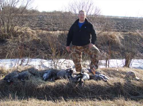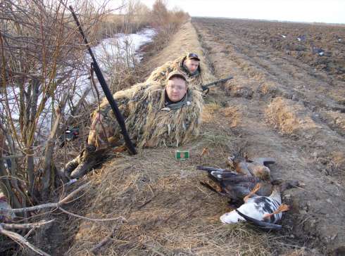 Потом было много всего - гагаканье со всех сторон, все рядом, все низко... стаи, пары, одиночки, не знаеш в кого стрелять, забываешь дозаряжать ружьё, подборы соседских подранков (за одним напарник бегал с полчаса по свежей пашне - кто бегал, тот знает какая это мука!). К слову сказать гуси ВООБЩЕ не реагировали ни на профиля ни на манки. И было весьма холодно, но