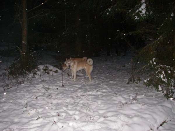 А теперь к самому главному.Многие говорят что Дик очень похож на лайку(внешне).Характер ближе к спокойному,но заводной и тогда держись,лает громко,но по делу-привлечь внимание.На прогулке спокойно бегает без поводка на расстояние 3-5 метров,оглядываясь на хозяина(йку)."Вкусняшки" подбирает,но если успел сказать фу,то плюнет.Очень интересуется утками,их у нас в парке очень много,ловит мышей,роет землю(зачем понять не могу),зимой очень возбуждался видя снег-глаза горят,хвост серпом и в полет.
