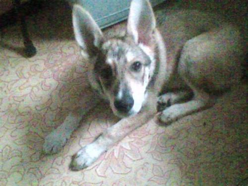 Сын с 9 лет клянчил собачку,но тогда еще был жив 2-ой пудель.А когда Стар умер,то просьбы сына стали более настойчивы,но и я понимая всю ответственность под разными предлогами отказывала.И вот,в прошлом году в наше "спокойном" кошачьем прайде(3 кошки и вся семья-Львы) появился щен.Сын,пока мы с мужем были на даче,приобрел щенка неизвестной породы(купил возле м.ПР Ветеранов,говорит за 30 р),правда продавцы сказали что помесь лайки с овчаркой,возраст примерно 1-1,6 уши только встали.