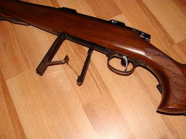 Ореховая ложа выполнена в Баварском стиле, с рифлением и вентилируемым резиновым затыльником приклада. Форма ложи обеспечивает использование как открытых прицельных приспособлений, так и оптики..."