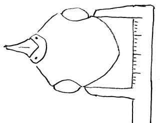 НА фото - пример хорошей посадки англо-индийского клобучка. Выкройку нашла канючиную, но она тоже сгодится. НА затылке V-образное отверстие надо немного сшить, буквально три-четыре стежка, это поможет держать клобучку форму. Ширина в наиболее широкой части выкройки должна быть равна удвоенному значению ширины головы птицы. Для начала можно взять 50-55 мм на самку, то есть в итоге от 100 до 110 мм, с шагом в 2-4 мм.