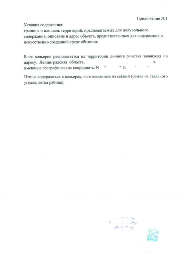 проект содержания (разведения) объектов животного мира в полувольных условиях и искусственно созданной среде обитания, включающий сведения о соответствии площади территории, на которой предполагается содержание и разведение объектов животного мира, их физиологическим особенностям, обеспечении кормами в количестве и составе, соответствующим физиологическим потребностям животных, расчет максимальной численности особей, допустимой к содержанию в вольере, планируемой системе маркировки или мечения для идентификации каждой особи (при необходимости) и перечень противоэпизоотических мероприятий, соответствии условий содержания требованиям и нормам, в том числе санитарным, предусмотренным нормативными правовыми актами Российской Федерации и Ленинградской области, наличии условий, исключающих возникновение угрозы для жизни и здоровья обслуживающего персонала, населения, сельскохозяйственных и других домашних животных и специалистов зоологического, зоотехнического и ветеринарного профилей, а у граждан - навыков по содержанию животных в полувольных условиях и искусственно созданной среде обитания.