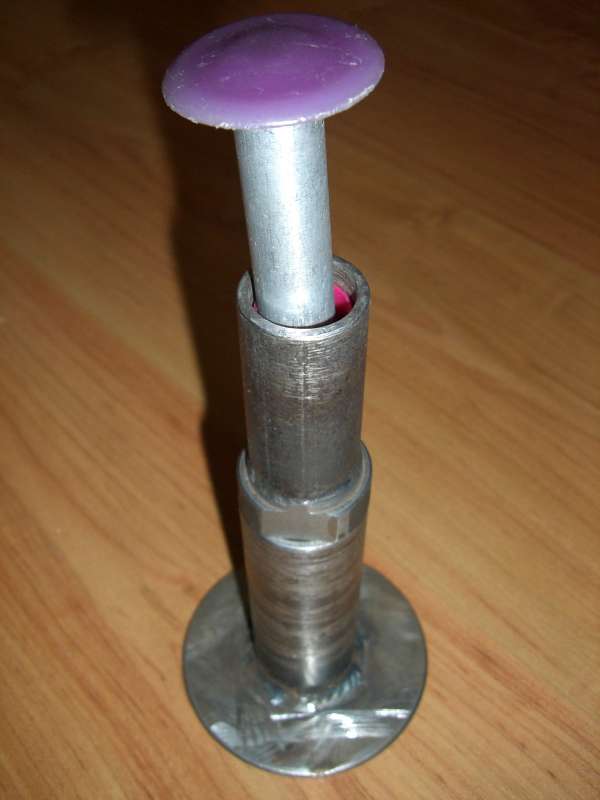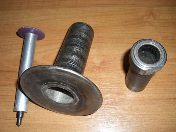 P.S. Забыл сфоткать еще одну деталь, это простой стальной цилиндр, высота 50, диаметр 33, который ставлю на донце гильзы (фото 2) когда хочу вогнать ее в калибровочное кольцо. Это для того, что бы энергия удара равномерно распределилась по всей плоскости донца гильзы, если я, случайно, не попаду по центру, чтобы не погнуть ее.