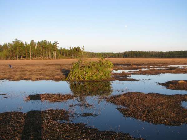 Дальше я забыл про всякие тряпки, сетки и поставил на болоте вот такое уродливое (на мой взгляд) сооружение.