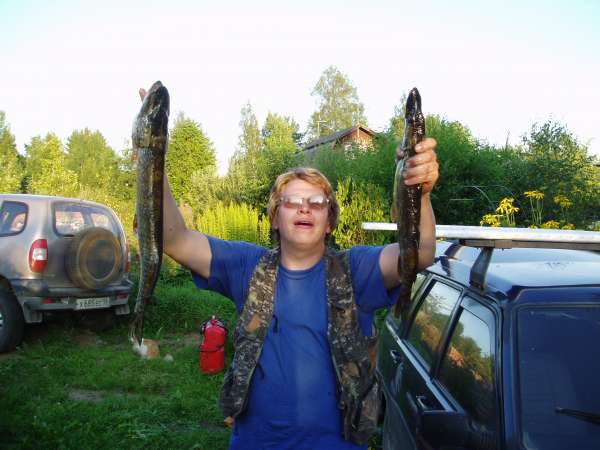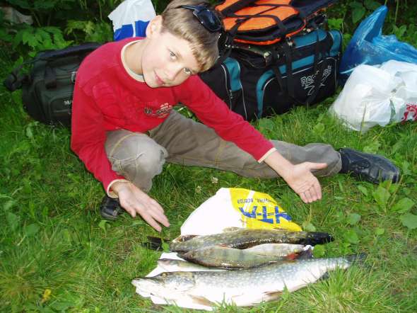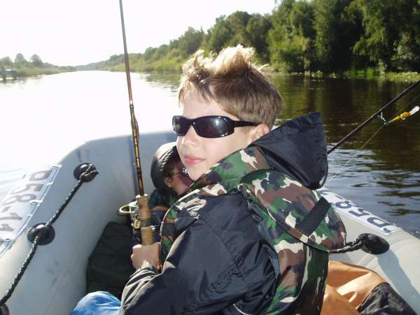 Выехали из города довольно поздно-около 9 утра т.к. ехать на мероприятие пришлось после отработанной смены.Час довольно плотного движения по Мурманке и мы прибываем ко мне на дачу в Синявино,грузим на видавшего виды ИЖика лодку,снасти,нехитрую снедь-и в путь.Подъезд к Новоладожскому каналу,порадовал легким OFF-ROUDом,но ИЖ с честью выдержал испытания-на его долю и не такое выпадало...Сбросились-и "полный вперед"До Назии долетели на глиссе минут за 30-сказались несколько остановок в пути на осмотр достопримечательностей.Полтора километра протоки прошли в водоизмещающем режиме,разглядывая берега,вдоль которых курсировали,арендованые на базе ЛООИРа пеллы и различного рода надувные плавсредства с моторами и без.Иногда мимо проплывали стайки нырков и кряковых-невольно вспомииинался близящийся сезон охоты!И вот наконец перед нами Матушка Ладога!Встречный несильный ветерок разогнал 30-40 сантиметровую волнишку,солнышко припекало-погода сулила приятную прогулку...По старой традиции новичков напоили чистой ладожской водичкой.Однако с рыбалкой в начале не заладилось-вплоть до глубин в 3метра многочисленные островки водорослей не давали распустить "дорожку"Наконец на 3х метрах трава закончилась и за борт полетели воблеры.Хорошо проявивший себя по окуню и мелкой щучке,5см "вуоксовский""окунек"на сей раз не сработал и на глубинах около 4х метров в воду отправились 7 сантиметровая "плотвичка"неизвестного производителя и "вуоксовский"составной дипдайвер желто-серебристого цвета.Наконец левый спининг гнется в дугу и после недолгой борьбы трехкилограмовая зубастая красавица оказывается на борту!Наш самый младший член экипажа,несколько приунывший было,вопит от восторга и щука под аплодисменты отправляется в садок.За почин открывается припасенная бутылка пива и пускается по кругу взрослыми членами экипажа.Юнга отмечает успех Колой.Дальше дело пошло на лад-кончик правого спининнга фиксирует поклевку и еще одна зубастая килограмма на полтора составляет компанию первой.Далее следуют редкие поклевки небольших окуней-среди них однозначным фаворитом является вуоксовский составник.Подходим к Большому Зеленцу и после непродолжительных поисков находим проход в тросте,ведущий к берегу.Там уже стоят много повидавший на своем веку зодиаковский RIB,в хлам убитая пелла и посейдоповский 340й Викинг.Места для стоянки на берегу практически нет,но ввиду ограниченного временного лимита,решаем остаться здесь.Короткую трапезу,чем бог послал провели на прибрежных камнях...К сожалению времени на исследования острова не было и эту часть программы оставили на будующее.Путь домой отметился поимкой приличного окуня и скачкой на глиссе по попутной волне.Юнга был в восторге,чего нельзя сказать о моей жене,отбившей себе "пятую точку".На обратном пути в Канале приходилось постоянно сбрасывать газ,дабы увернуться от многочисленных купальщиков норовящих залезть прямо под лодку.Итак за день пройдено 50км по воде,поймано 7кг рыбов,кои по возвращении были помещены в коптильню и употреблены с пивом.Спасибо Матушка Ладога за хорошую рыбалку и прекрасный отдых!!!