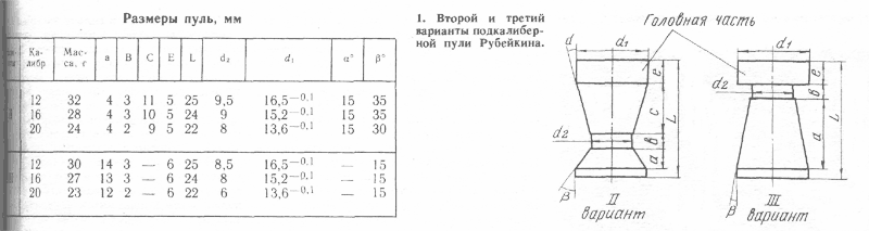 вот размеры на разные калибры