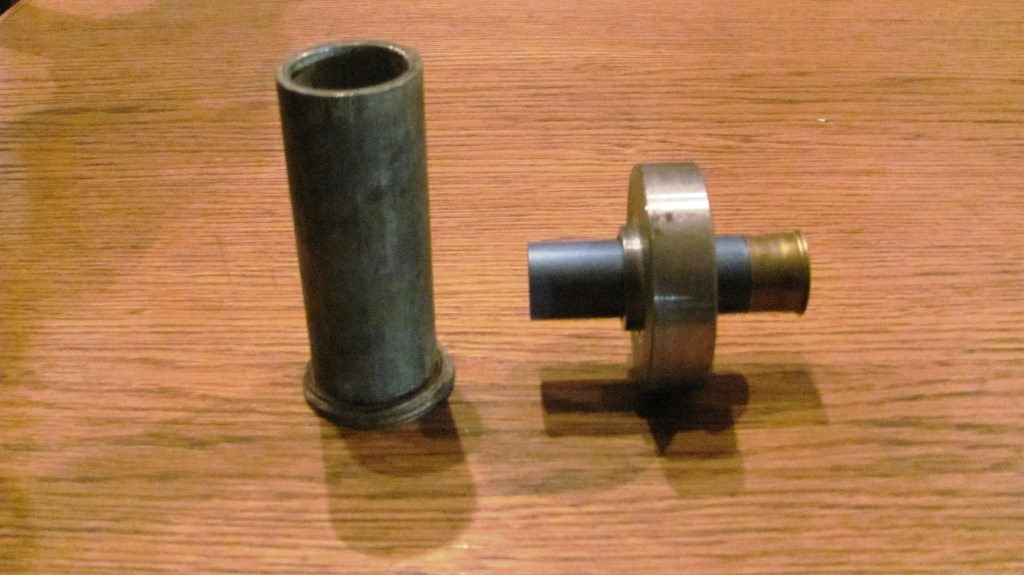 Туда же ставится упорное донце-шайба. Промеж них вставляем гильзу и жмём станок.