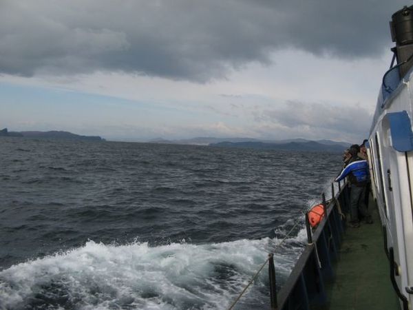 В месте лова простояли не долго, рыба клевала плохо и наш пароход пошел дальше по океанским просторам. Шли поперек волн и местами бортовая качка была довольно ощутимой- в кают-компании летели со стола продуктовые причиндалы и даже ломало кресла под телами пассажиров….