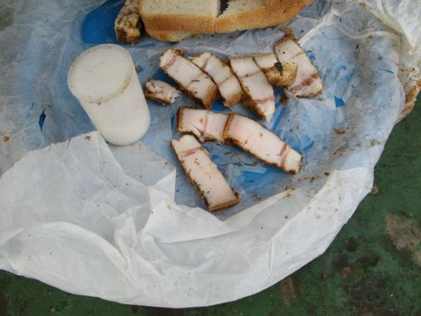 Оккупируем кают- компанию и по «неписаной» традиции чуть-чуть «завтракаем» за отход, за здоровье, за Тихий океан. Поднесли стопарик и Нептуну, чтобы рыбкой угостил….