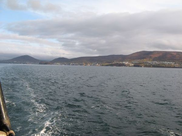 Рыбаков-туристов на этот выход собралось около 30 человек, присутствовали и дамы. С воодушевлением и надеждой на прекрасный отдых отходим от пирса и дуем на выход из Авачинской бухты. Город остается нас ждать….